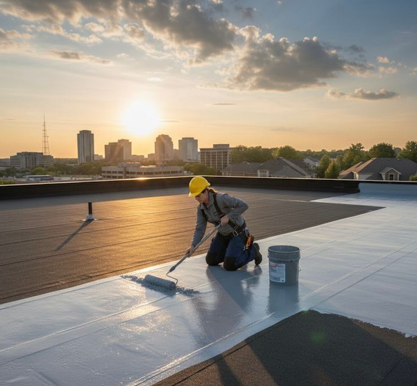 Roof restoration extends the life of your existing system using silicone, acrylic, or polyurethane coatings that seal small openings, tolerate standing water from snowmelt, and reflect solar heat. This process prevents recurring leaks caused by refreezing moisture and improves thermal performance without the cost and disruption of a full replacement.